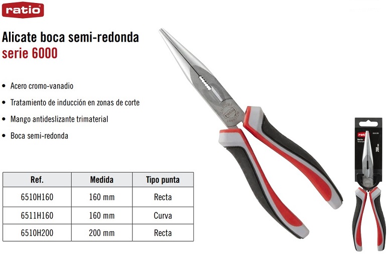 ALICATE BOCA SEMI-REDONDA RECTA 200 MM