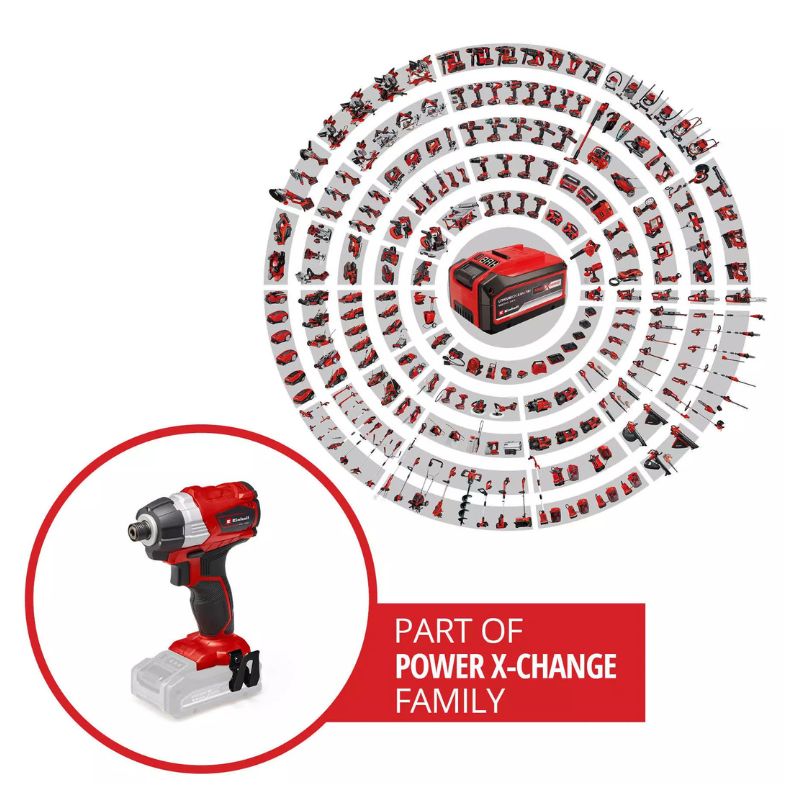 La llave de impacto con batería se acciona por un motor eléctrico sin escobillas. Los motores eléctricos sin escobillas son más eficientes y a la vez potentes que los motores eléctricos convencionales. Así se agota al máximo el tiempo de trabajo con una carga de batería y aporta la potencia necesaria en trabajos exigentes. Frente a motores con escobillas, la vida útil de motores sin escobillas es claramente más larga. Además, no se producen trabajos de mantenimientos en motores sin escobillas. Portaherramientas hexagonal de 1/4″ (6,35 mm).