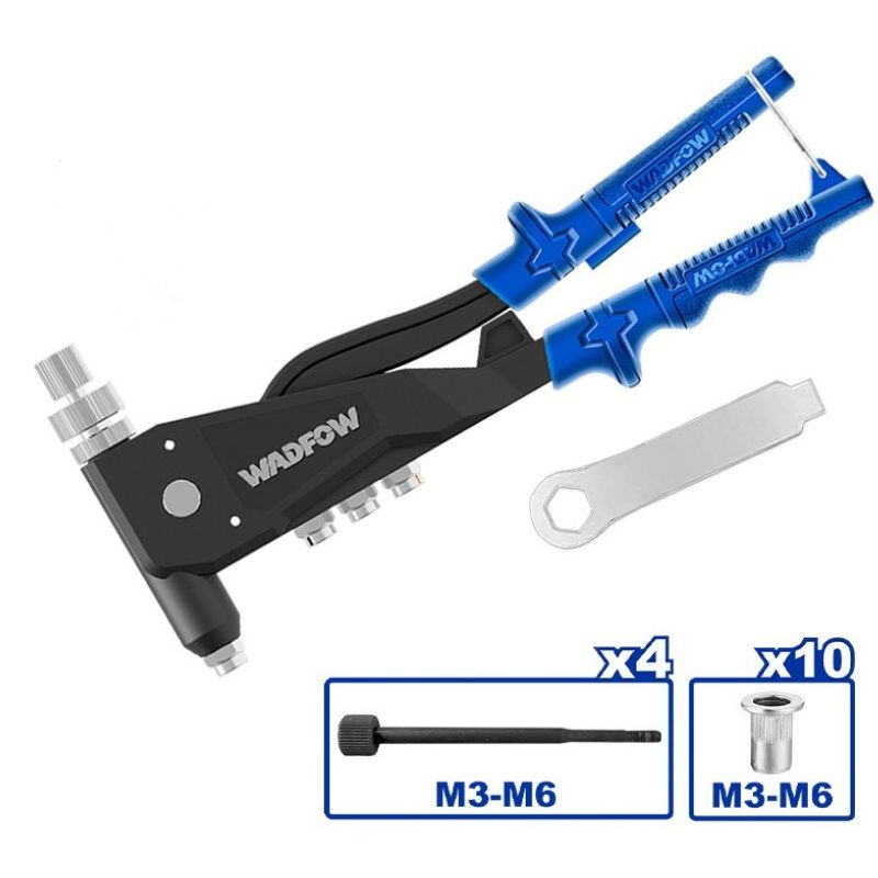 Remachadora de tuercas M3-M6, perfecta para fijaciones fuertes en metal o plástico. Herramienta manual robusta y precisa, ideal para talleres y bricolaje.