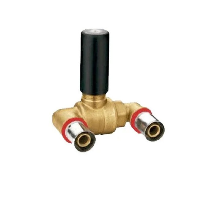 Válvula de esfera para empotrar, compatible con sistemas multicapa de prensar. Control preciso del flujo, instalación limpia y acabado profesional.